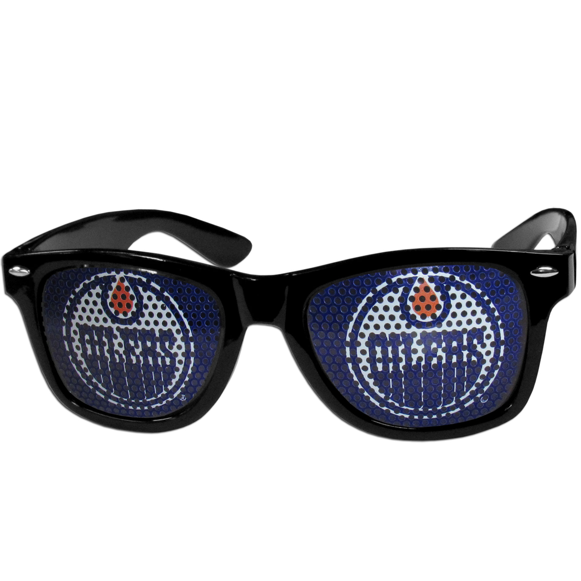 Our officially licensed game day shades are the perfect accessory for the devoted Edmonton Oilers® fan! The sunglasses have durable polycarbonate frames with flex hinges for comfort and damage resistance. The lenses feature brightly colored team clings that are perforated for visibility.