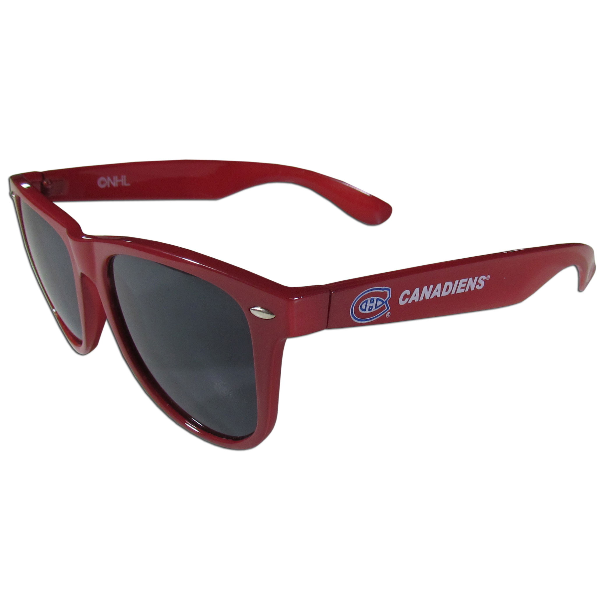 Our beachfarer sunglass feature the Montreal Canadiens® logo and name silk screened on the arm of these great retro glasses. 400 UVA protection.